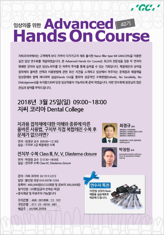 - 임상의를 위한 Advanced Resin Hands on Course