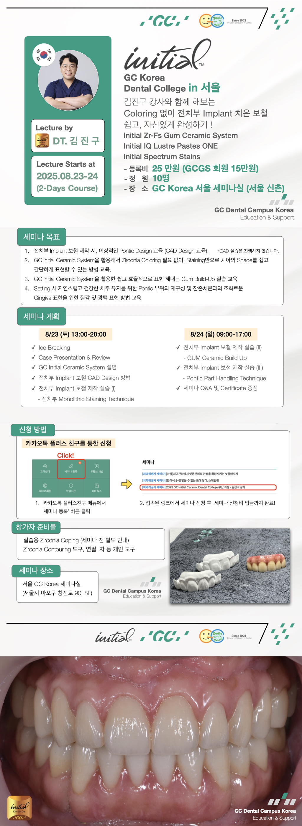 2025-10-25[치과기공사 세미나] [GC Dental College Basic] [8.23-24 서울_지르코니아_김진구] Coloring 없이 전치부 Implant 치은...