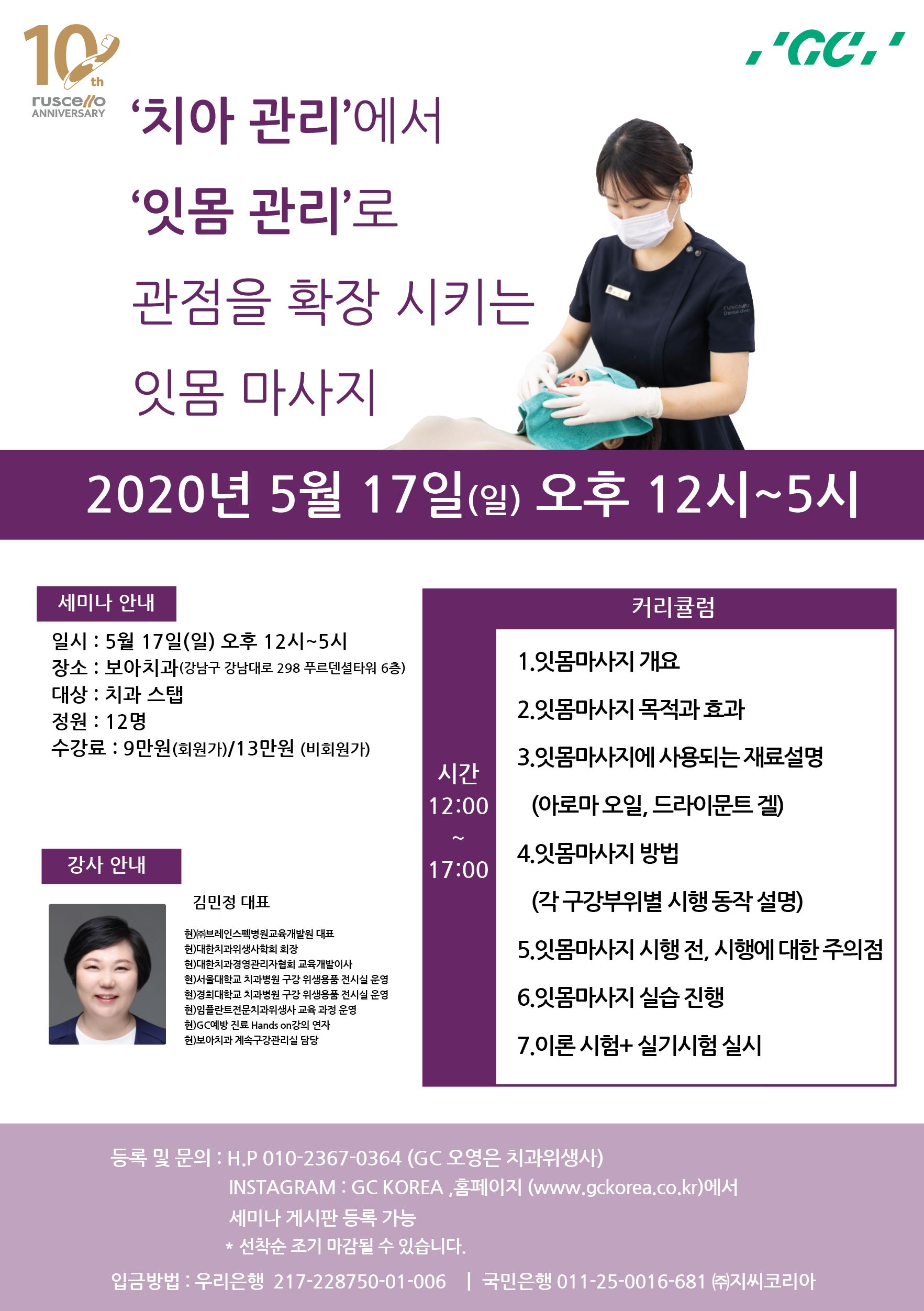 [치과위생사 세미나] (5/17)치아에서 잇몸으로 관점을 확장시키는 잇몸마사지 세미나