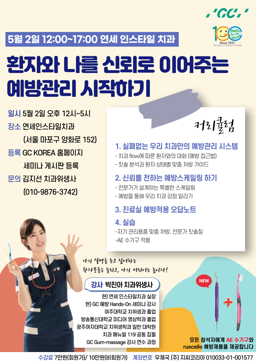 [치과위생사 세미나] [마감] 환자와 나를 신뢰로 이어주는 예방관리 시작하기