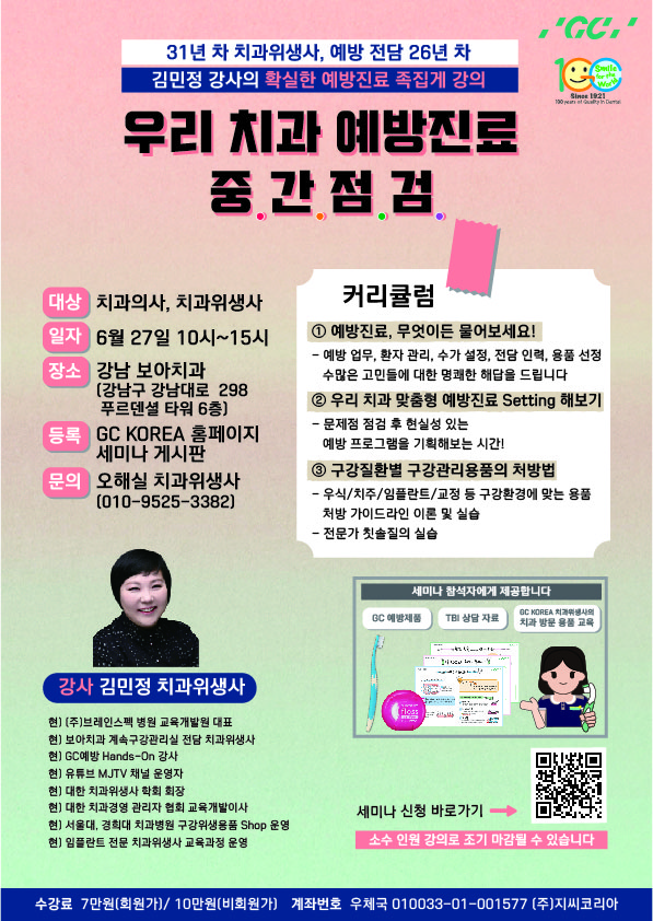 [ 세미나] [마감] [6/27우리치과 예방진료 중.간.점.검]